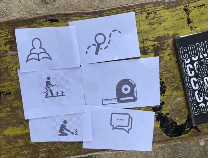 - The icon identification activity revealed a significant challenge as farmers struggled to associate meanings with the icons provided. Farmers found it challenging to interpret icons like measuring tape or surveyor tools commonly used in the app. One farmer remarked, "You people! you have brought us foreign signs! We are used to using rope; one person stands here, one person stands there to measure." This emphasized the disparity between the icons presented in the app and the farmers' local, rope-based land measurement